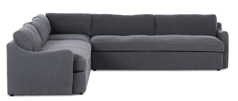 Heritage-inspired comfort. The three-piece sectional's sloping track arms and a protruding front decking are a study in playful forms, while subtle boxing along the front perimeter maintains a simple, polished look. The boxed cushions incorporate a feather/fiber blend and S-spring suspension for the ultimate sink-in sit. Covered in 100% linen.