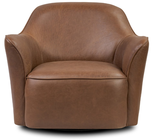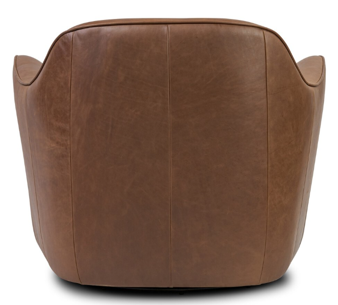 Smooth lines and impeccable tailoring bring a clean, elevated look to this modernized 360 swivel chair. Made from top-grain leather with a rich mahogany finish, flared arms and piping trim reflect the intention behind this timeless design.